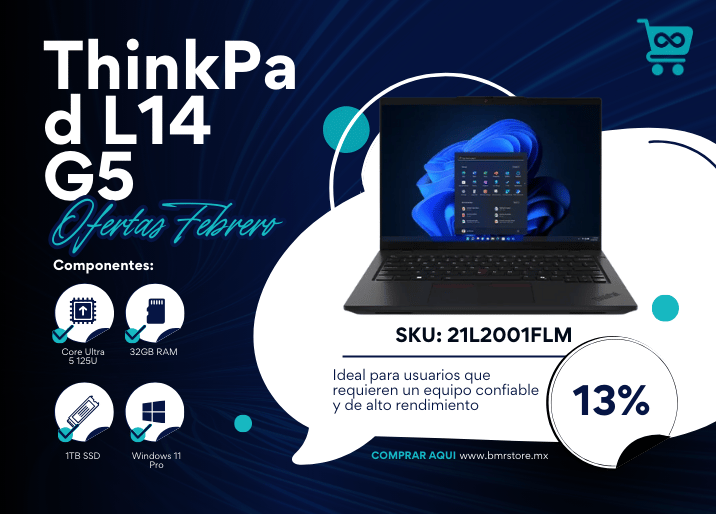 0 ReseñasThinkBook 14 G8 IA, Core Ultra 7 255H( 4.4Ghz, 24MB) 14" WUXGA, 32GB, 1TBSSD,W11P, 1YR