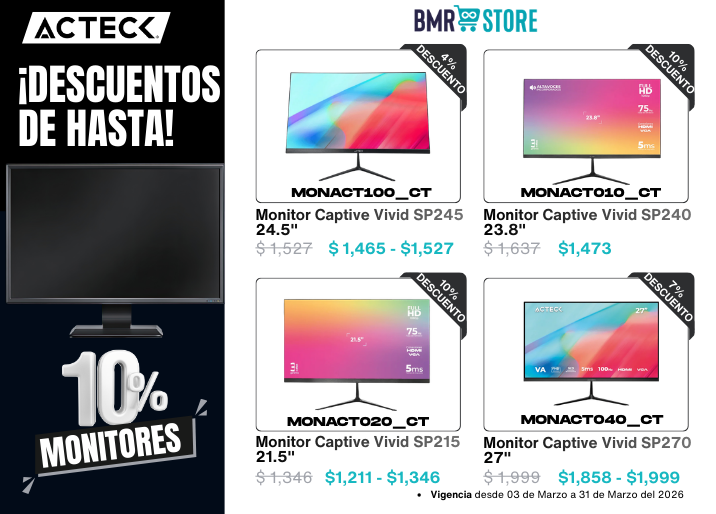 Monitor Acteck Captive Vivid SP270 LED 27", 1920x1080 Full HD, 75Hz, HDMI, Negro