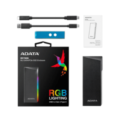 Adata Gabinete de Disco Duro EC700G RGB M.2, SATA, USB 3.2, Negro