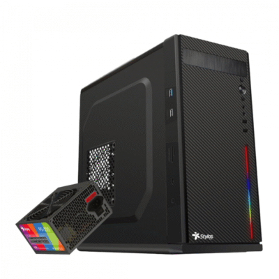Gabinete Oficina Secai Micro Tower Stylos RGB con fuente de poder 550W STGASC1B