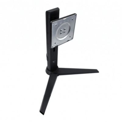 Soporte de monitor de escritorio en color negro, fabricado con una combinación de plástico y acero. Este soporte es compatible con pantallas que tengan un tamaño mínimo de 25.4 cm (10") y un tamaño máximo de 81.3 cm (32"). La compatibilidad con la interfaz de montaje varía entre 75 x 75 mm y 100 x 100 mm, lo que permite una amplia gama de opciones de instalación.