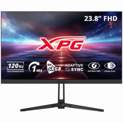 El monitor XPG LED de 23.8 pulgadas ofrece una resolución de 1920x1080 Full HD, ideal para experiencias de juego. Con una velocidad de actualización máxima de 120Hz, proporciona imágenes fluidas y nítidas. Su tecnología de visualización LED garantiza colores vibrantes, con una profundidad de color de 8 bits y una cobertura sRGB del 99%, lo que permite visualizar hasta 16.7 millones de colores.
