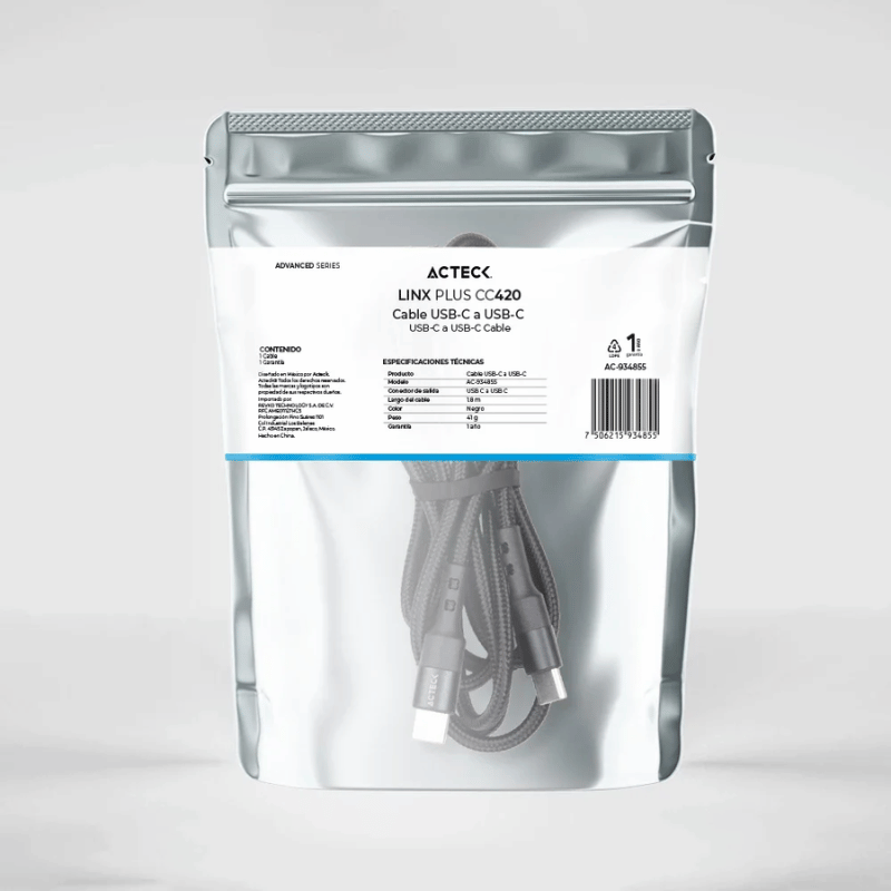 En resumen, si estás buscando un cable USB-C confiable y práctico para tus dispositivos móviles u otros equipos electrónicos compatibles con esta tecnología avanzada; el Acteck Cable USB C Macho – USB C Macho 1.80 Metros Negro AC-934855 puede ser justo lo que necesitas gracias a sus características técnicas destacadas como la longitud adecuada para tu comodidad y los conectores machos en ambos extremos facilitando así la transmisión eficiente e ininterrumpida durante todo momento.
