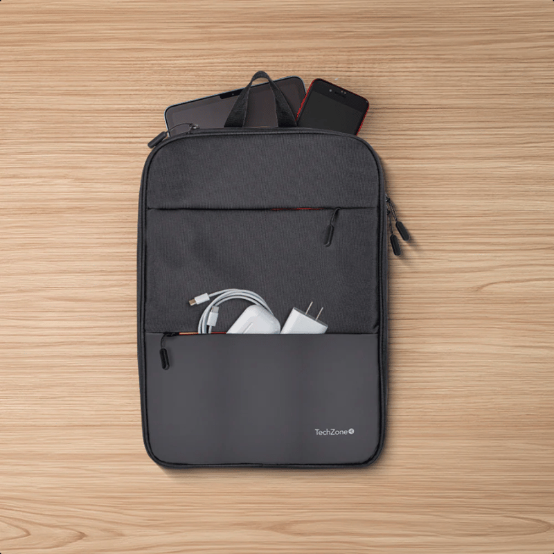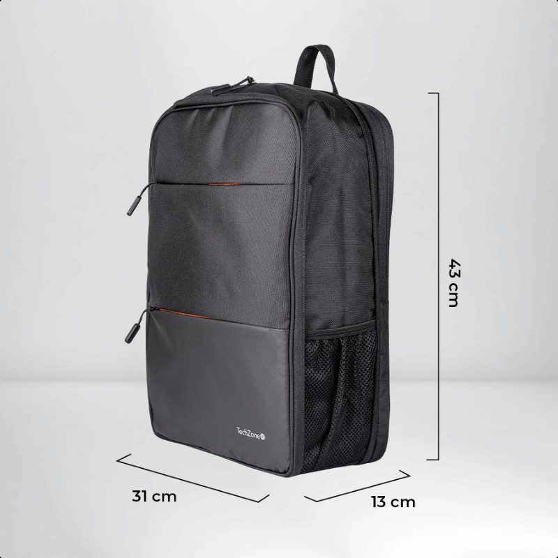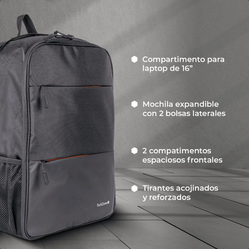 Backpack EXPAND TZLBP14 TECHZONE de 16 pulgadas color negro, múltiples compartimientos, garantía limitada de por vida