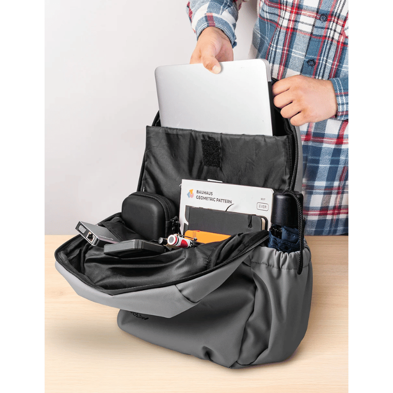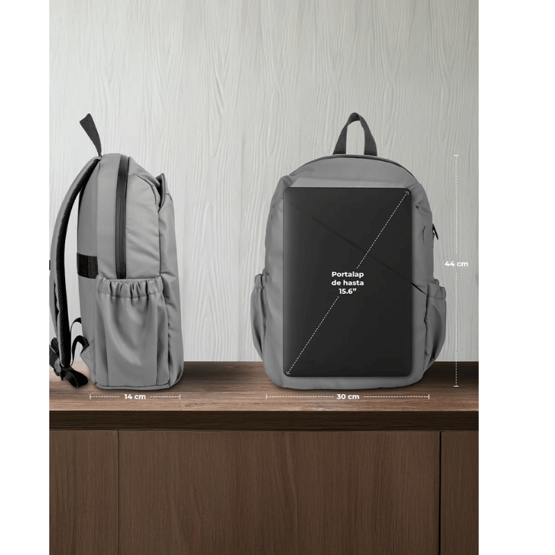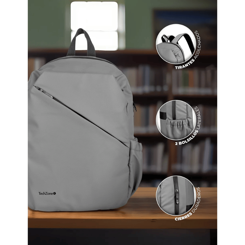 Backpack STYLE TZLBP29-G TECHZONE 16, resistente a salpicaduras 100% Poliéster, color Gris, GARANTIA LIMITADA DE POR VIDA.