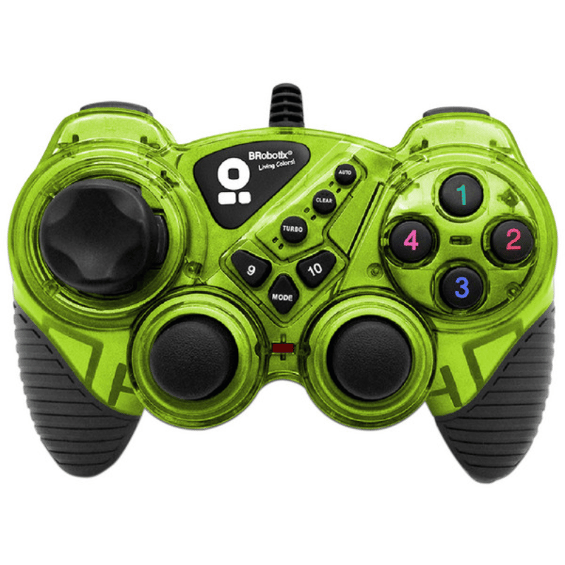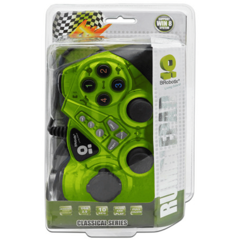 El Robotix Control p/ Juegos Rumblepad Alámbrico Verde 751899V utiliza conexión USB 2.0 y viene acompañado por un solo producto dentro del paquete. Su interfaz alámbrica garantiza una respuesta inmediata ante cada acción ejecutada por el usuario mientras juega.