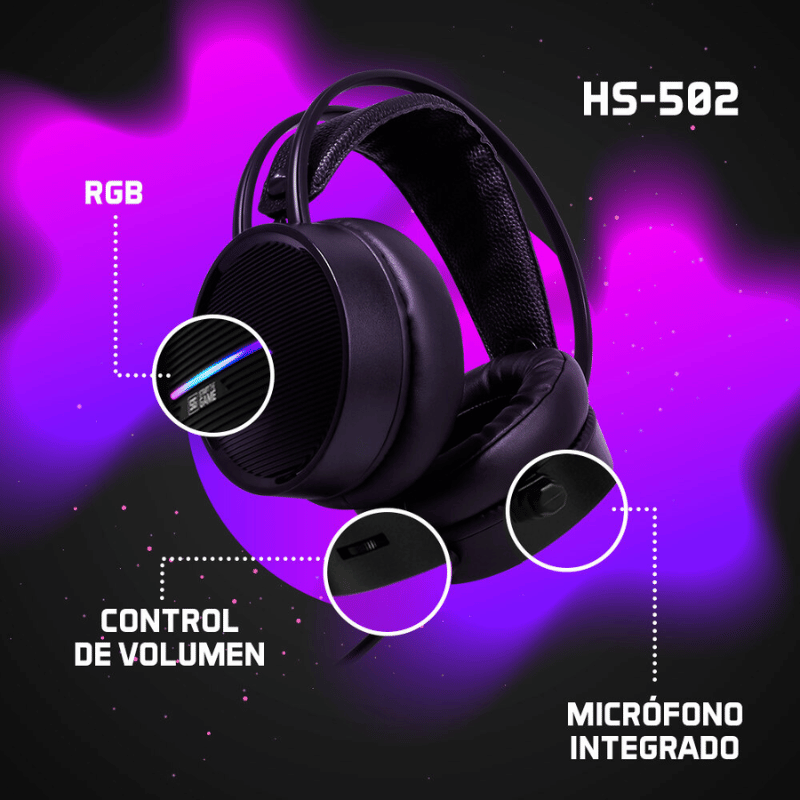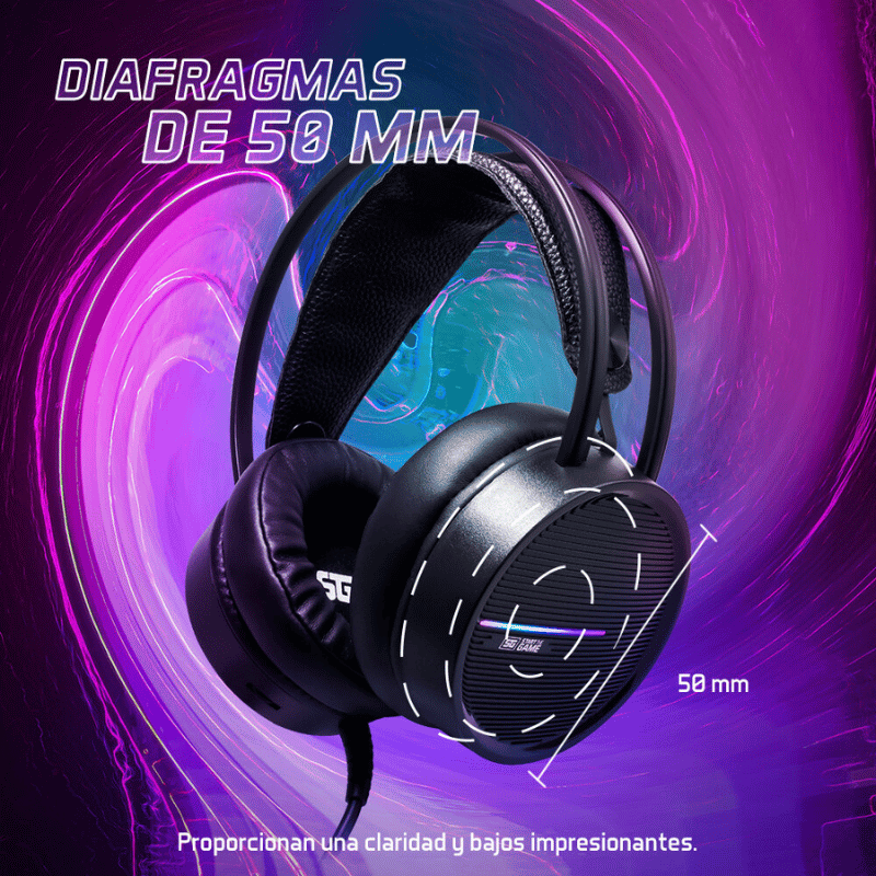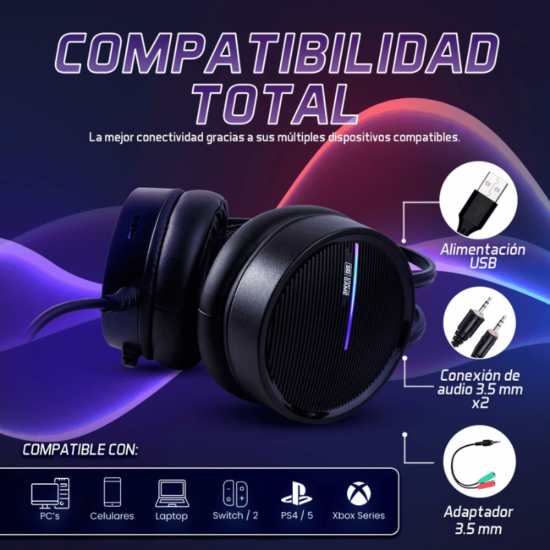 Diadema Gamer VORAGO START THE GAME HS-502 2x3.5mm + 1usb, RGB, 50mm, Negro, Incluye Adaptador 3.5mm cantidad