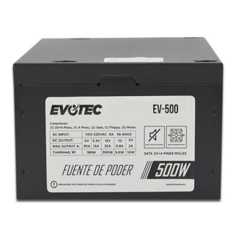Con una potencia total de 500 W y una potencia nominal de 500 W, esta fuente proporciona un rendimiento adecuado para diversas aplicaciones. La unidad opera con un voltaje de entrada AC que varía entre 100 y 240 V y una frecuencia de entrada de 60 Hz, lo que permite su uso en diferentes entornos eléctricos.