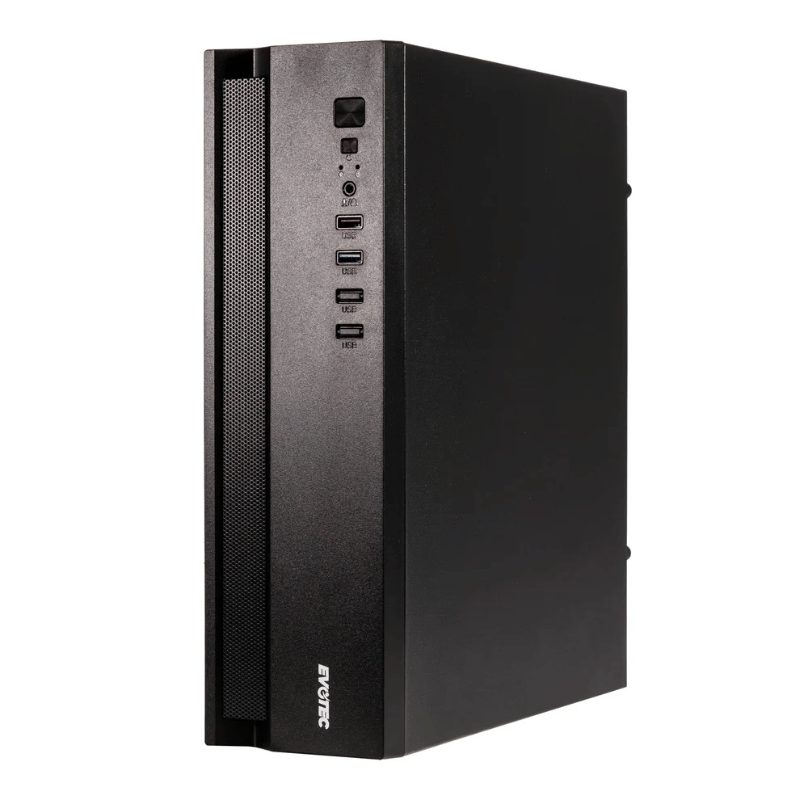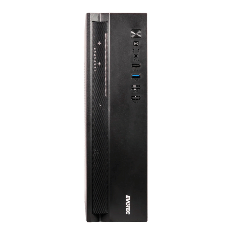 El paquete tiene un ancho de 385 mm, una profundidad de 145 mm y una altura de 343 mm, con un peso total de 2.67 kg. Este modelo no incluye bahías de 5.25″ ni puertos tipo C USB 3.1, pero su diseño compacto y funcionalidad lo convierten en una opción atractiva para quienes buscan un chasis eficiente y práctico.