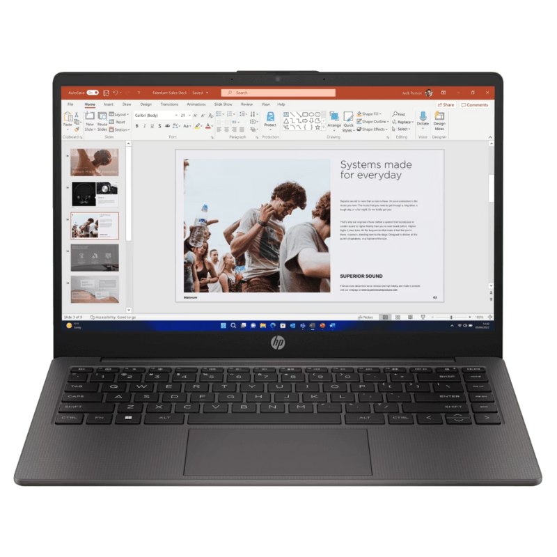 En resumen, la Laptop HP 14″ Ryzen 3 combina un procesador eficiente, suficiente memoria RAM y un almacenamiento rápido, todo en un diseño compacto y funcional.