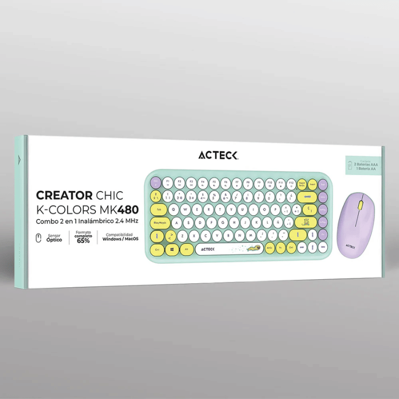 En resumen, el Teclado y Mouse Inalámbrico Acteck K-Colors MK480 AC-940238 combina un diseño atractivo en multicolor con características prácticas, ideal para un uso universal en entornos de trabajo o entretenimiento.