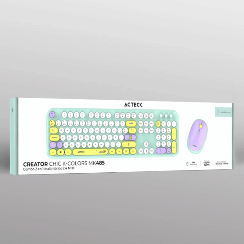 El paquete tiene una profundidad de 39 mm y una altura de 140 mm, facilitando su almacenamiento y transporte. Este teclado y mouse inalámbrico se presenta en un atractivo color multicolor, aportando un toque de estilo a cualquier espacio de trabajo.