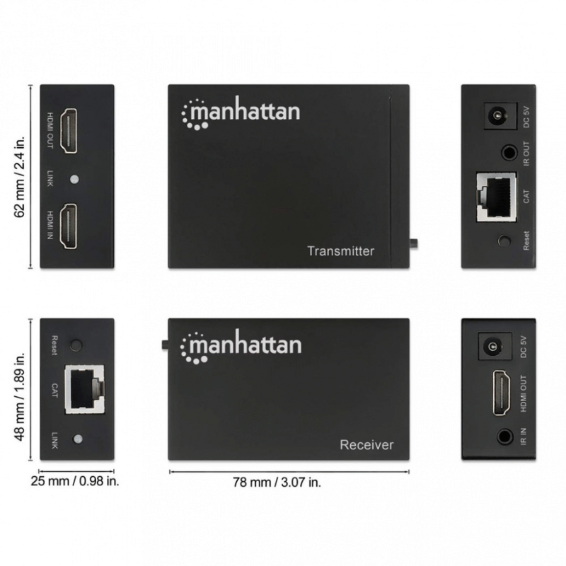 Manhattan Extensor HDMI por Cat5e/Cat6, Distancia Máxima 30 Metros, Cables HDMI Integrados