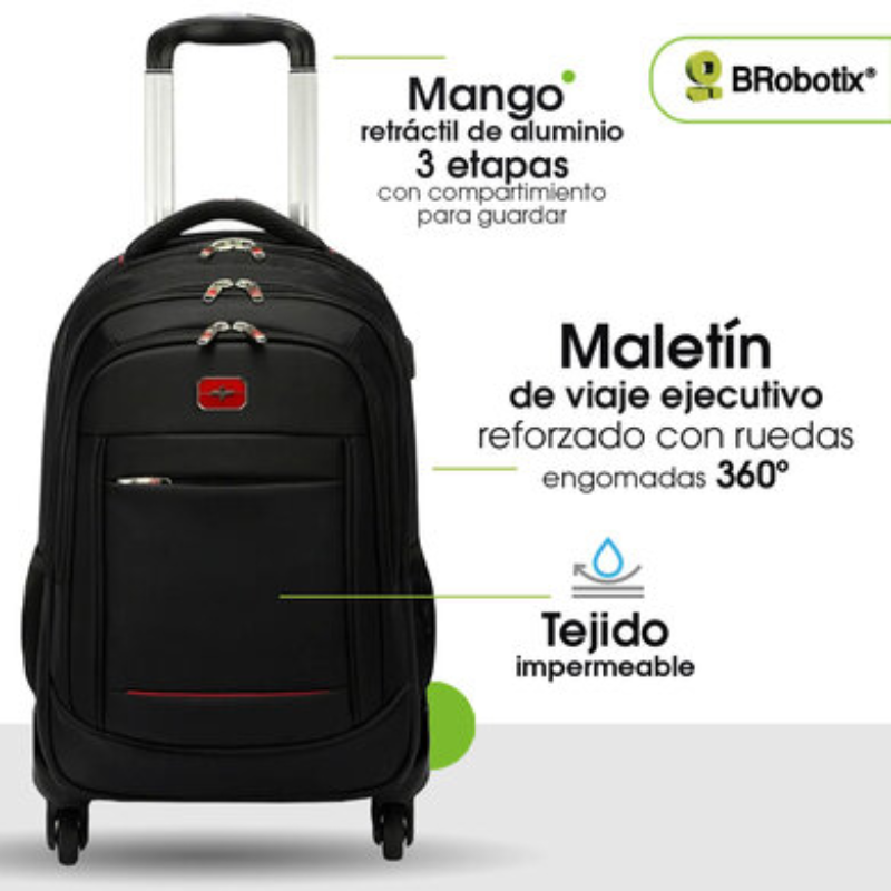 MOCHILA BACKPACK 15 A 18 PULGADAS, ANTIRROBO CARRY ON (CON RUEDAS) PARA LAPTOP, NEGRO, 406245 BROBOTIX