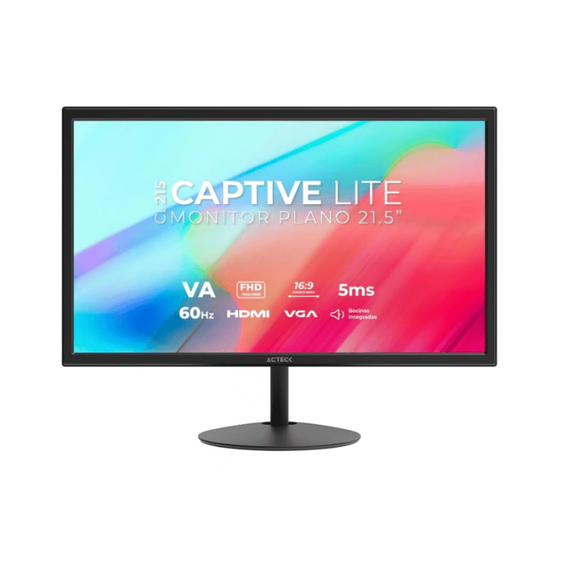 El monitor incluye altavoces incorporados, eliminando la necesidad de dispositivos de audio externos. La pantalla tiene una forma plana, lo que facilita su integración en diferentes espacios de trabajo o entretenimiento. Dispone de un puerto HDMI, permitiendo la conexión a múltiples dispositivos, mientras que no cuenta con puertos DisplayPort.