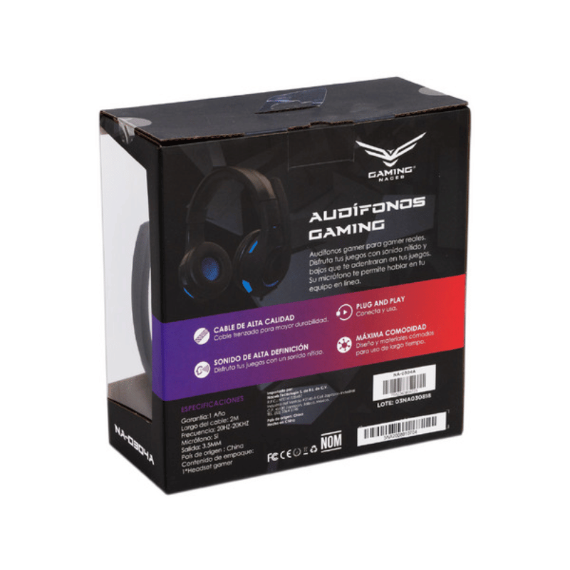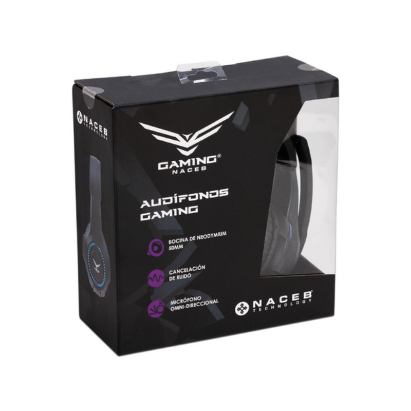 Naceb Audífonos Gamer NA-0304A, Alámbrico, 3.5mm, Negro/Azul