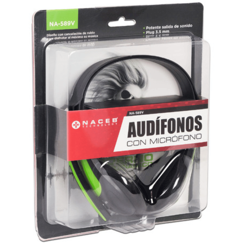 Naceb Audífonos NA-589VE, Alámbrico, 2 Metros, 3.5mm, Verde