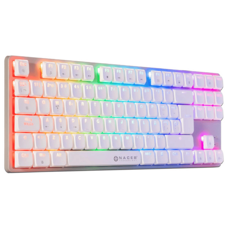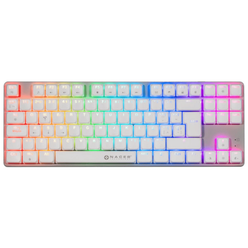 NACEB TECLADO MECANICO TKL GAMER LOW PROFILE RGB 80% K1009 87 TECLAS FULL BLANCAS