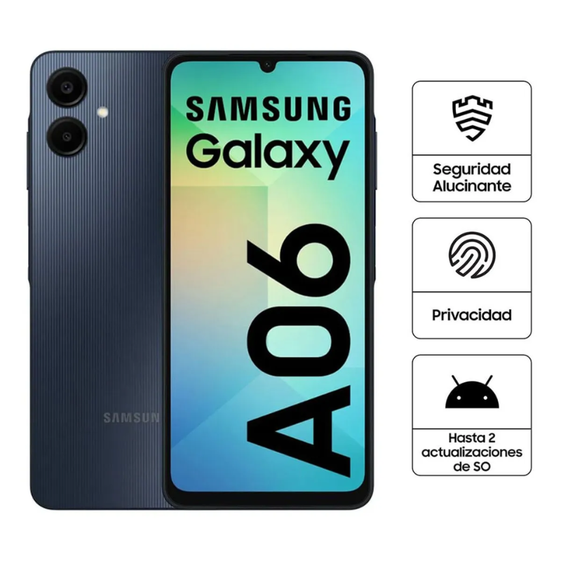 Samsung Galaxy A06, Pantalla: 6.5 Pulgadas, RAM: 4 GB, : 128 GB (expandible hasta 1 TB),Cámara trasera: Dual 50 MP