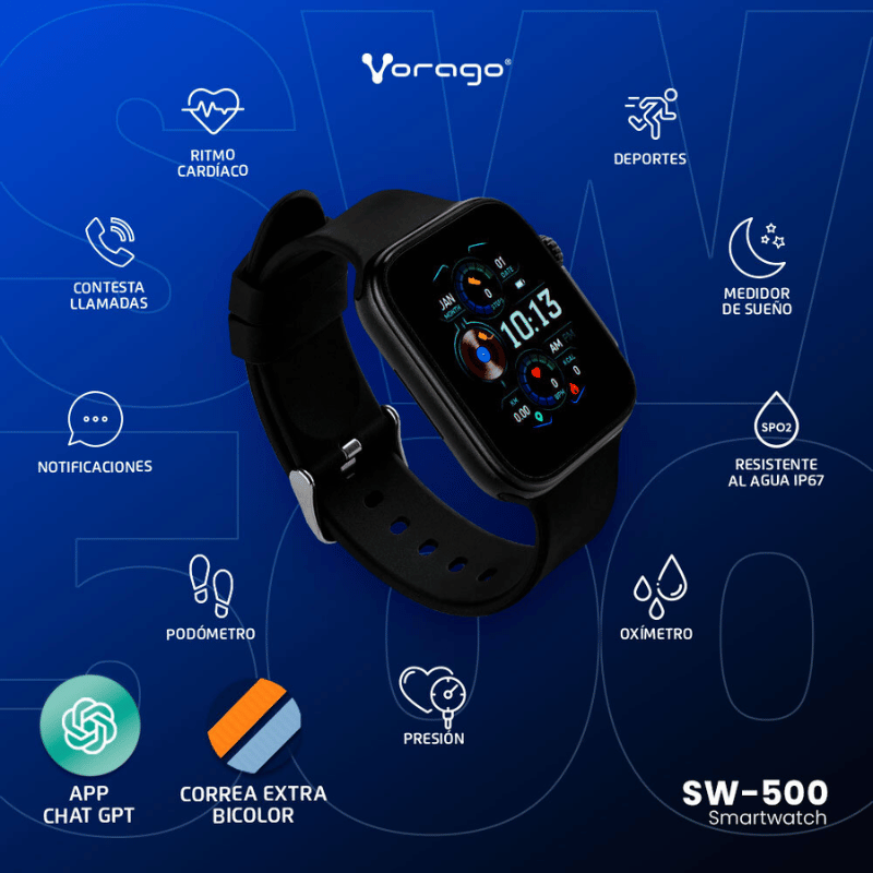 SMARTWATCH VORAGO SW-500 CUADRADO IP67 BT 5.1 AMOLED 1.78 PULGADAS, LLAMADAS, 1 EXTENSIBLE DOBLE VISTA // ChatGPT