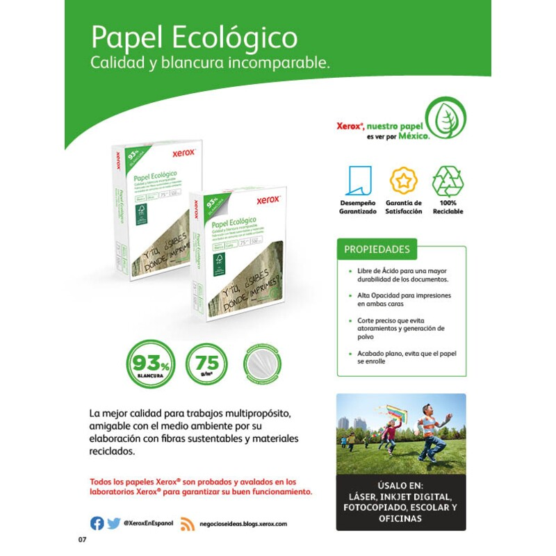 XEROX PAPEL ECOLOGICO CARTA 93% BLANCURA cantidad
